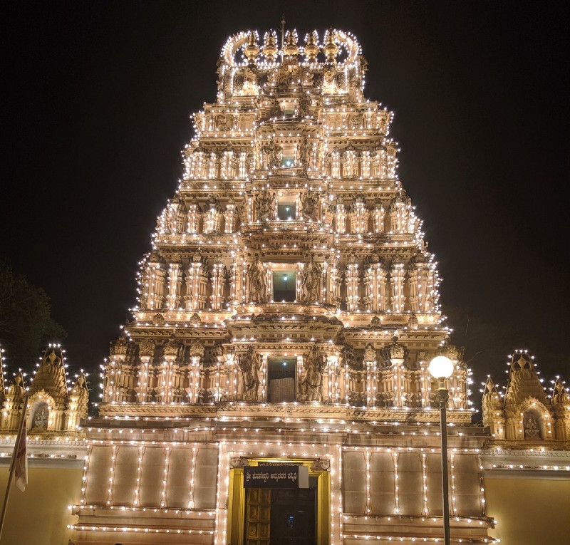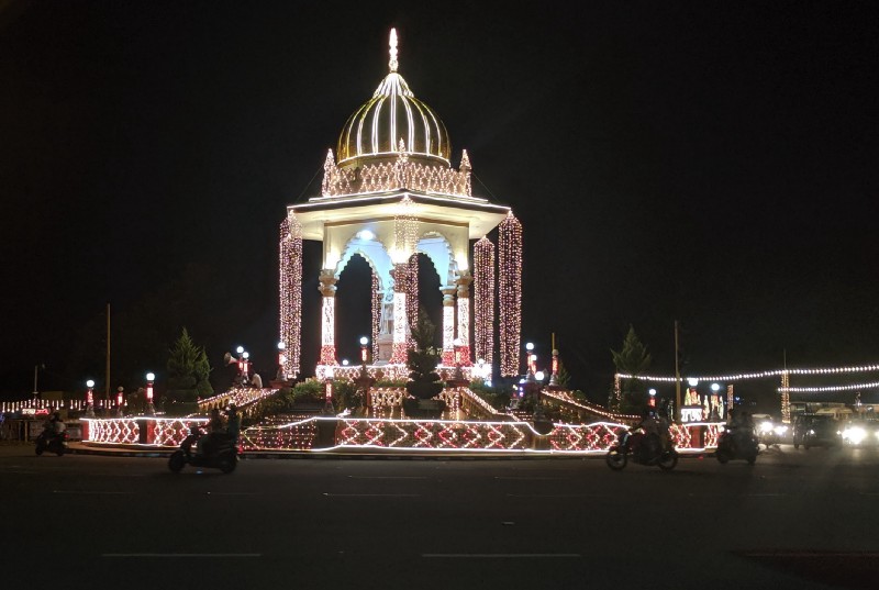 By the time the group got back from Chamundi Temple, freshened up, and arrived to pick me up, the lights around the city were burning bright. Couldn’t help but ooh and aah at how all the streets were lit up. Each street had a different kind of light. It is difficult to describe the beauty here, and the photos won’t do justice. You must see for yourself.