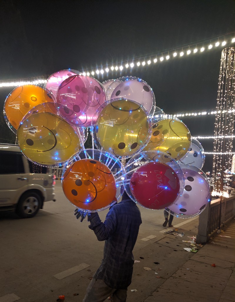 We saw these intricate patterns of rangoli made using stencils. Such a visual treat. The roadside vendor was selling stencils, and this was his marketing ploy to attract us to buy those stencils.