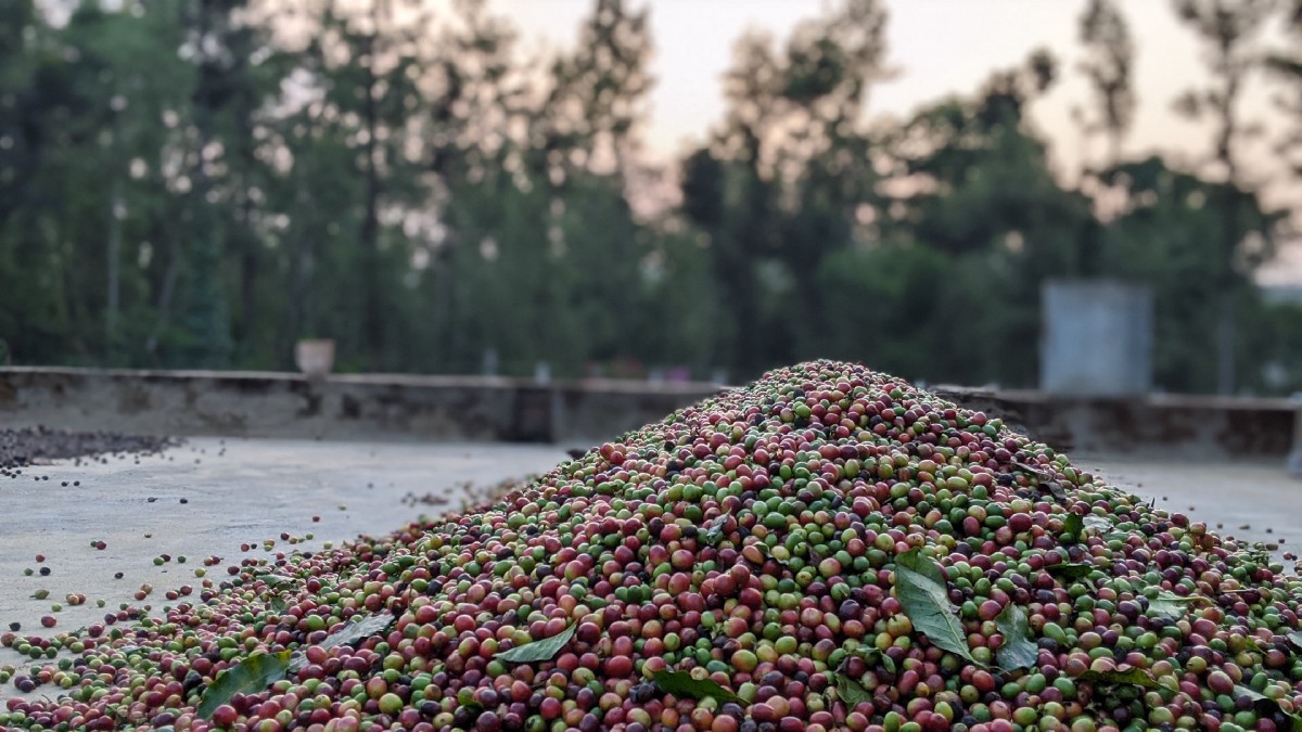 On a recent trip to the coffee belt of Chikmagalur in Karnataka State, India, we saw coffee beans being plucked. We also saw these gorgeous heaps of coffee beans. It was a sight that made my mouth water in anticipation…