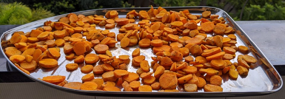 This is not yet dry. At this rate of shriveling, I’ll be surprised if I can get 2 teaspoons of turmeric powder at the end of it all!