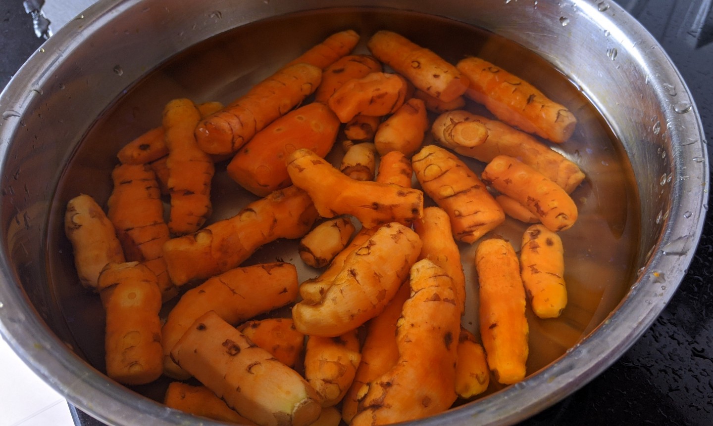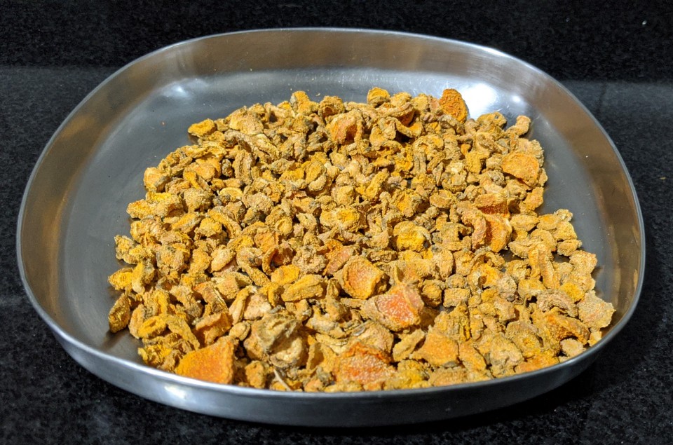 Checked the Internet for turmeric making tips. Thoroughly confused by the variety of instructions, I called a knowledgable aunt. After all, she must have done this hundreds of times! And she had. Armed with her tips, I embarked on the journey from root to powder.