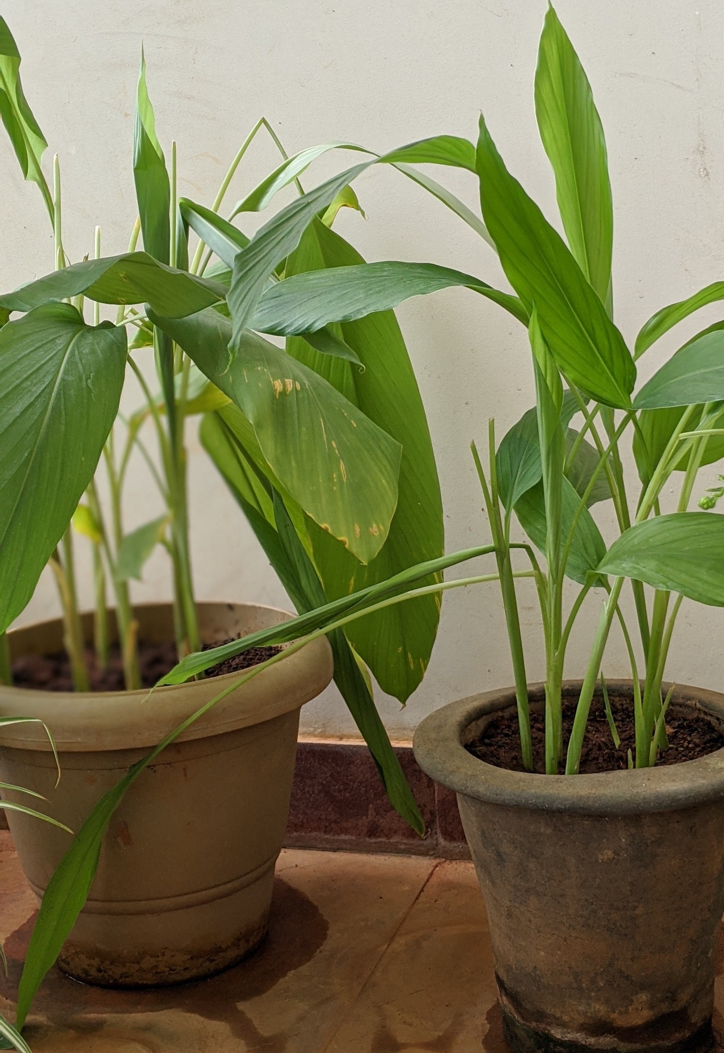 We had a few pots of turmeric plants scattered about. The plant is a lush green and has such lovely broad leaves.