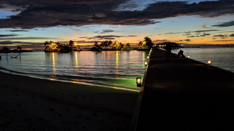How can I mention beach sunsets and not showcase the Maldives! Right here in this photo is a moment that was so good, I could have fainted. The setting sun, silence, the twinkle of just appearing night lights, a hammock in the distance — sigh. Trust the sun to make every occasion a celebration with his designer lighting!