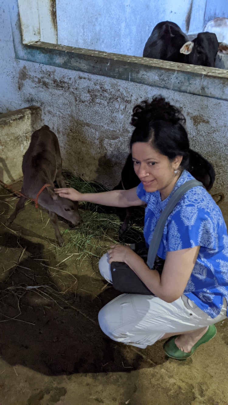 Again, I was clear I did not want to own one. I cannot imagine myself running a farmhouse. Sure enough, within a span of a couple of years, not one, but two friends have bought farmhouses! I visited one already. The picket fence and golden retriever are missing. But I am not overly concerned. These are small details. I’ll just focus harder on my wish next time. The farmhouse I visited came with an attached goshala (a place where cows are bred, milked, and tended to with care.) Ta da! I went berserk and clicked a bazillion pictures with the cows and baby cows.
