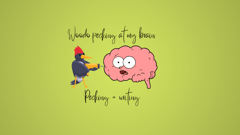 And most importantly, I have no clue when I’ll be back to my writing. Why? Because Woodo doesn’t believe in planning and timelines and systematic writing every day. What am I supposed to do with this woodpecker? Sheesh!
